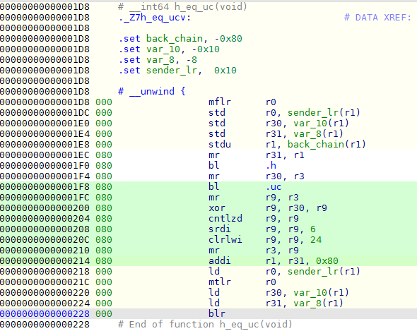 这次我们为PowerPC 64位添加了一个反编译器。我们将免费为所有拥有激活的PowerPC 32位反编译器的用户免费提供它。 让我们给您看一个简短的例子。 此汇编文本: